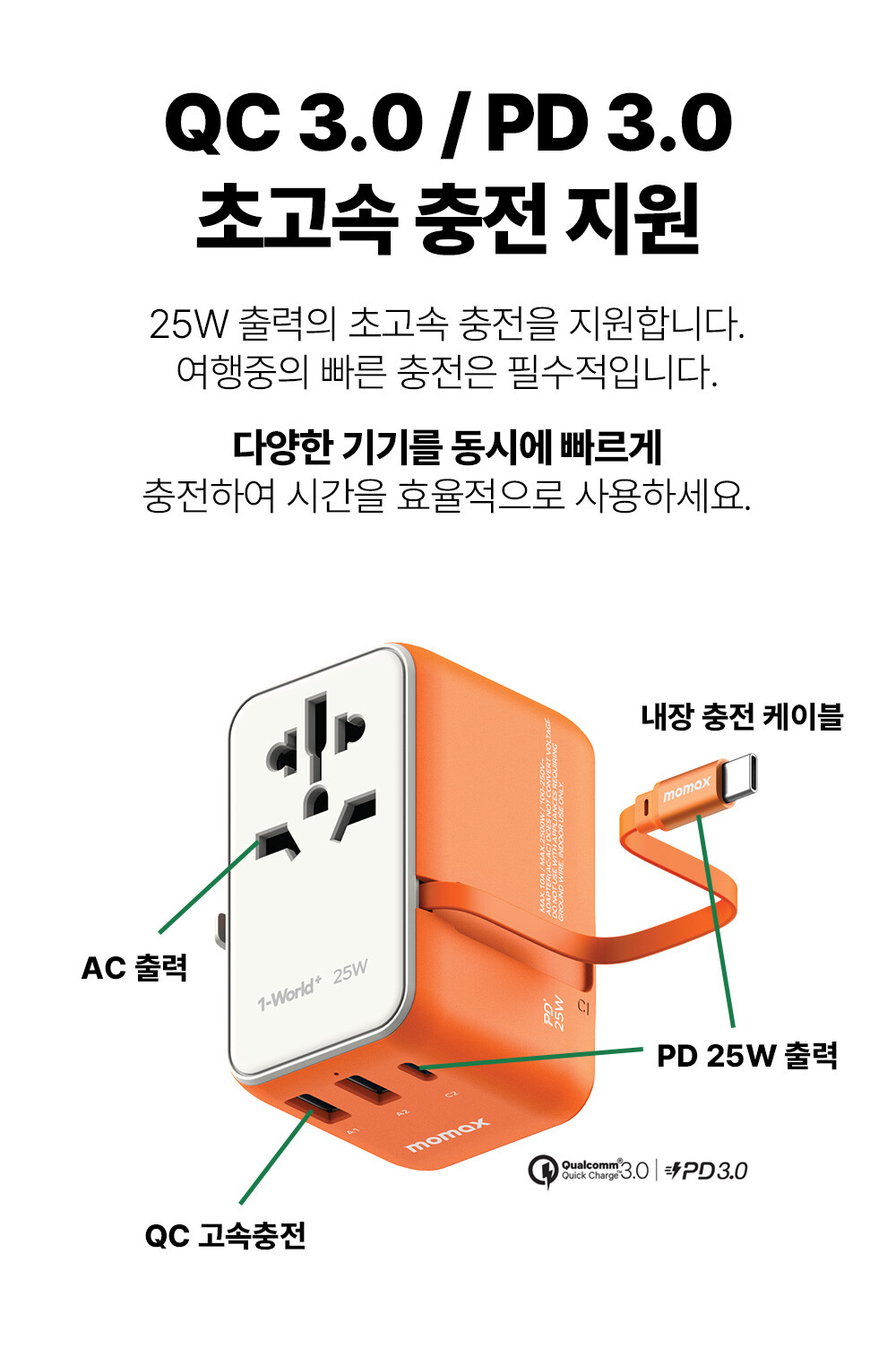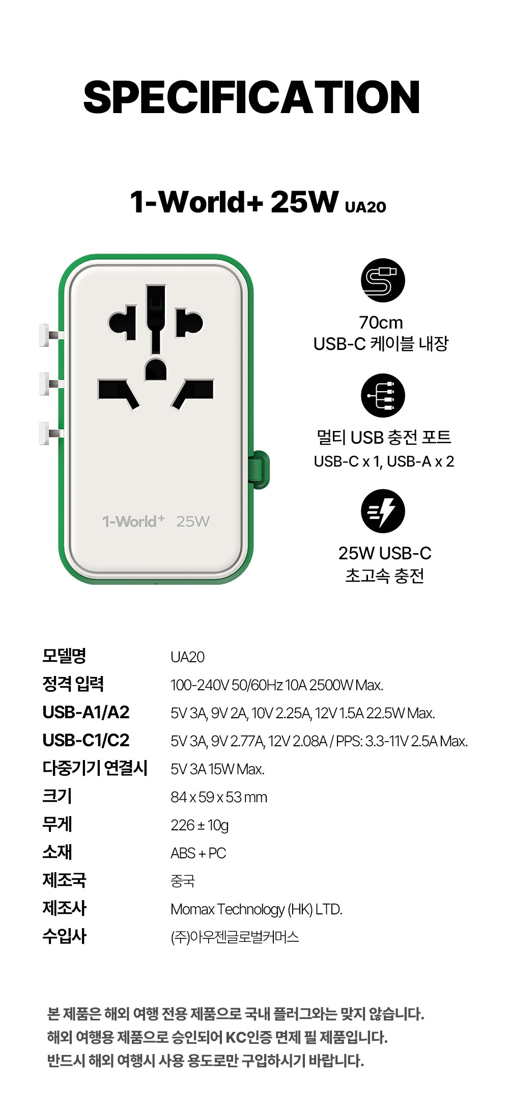 MOMAX 1-World+ UA20 | 모맥스 원월드 플러스 여행용 멀티어댑터 충전기 25W