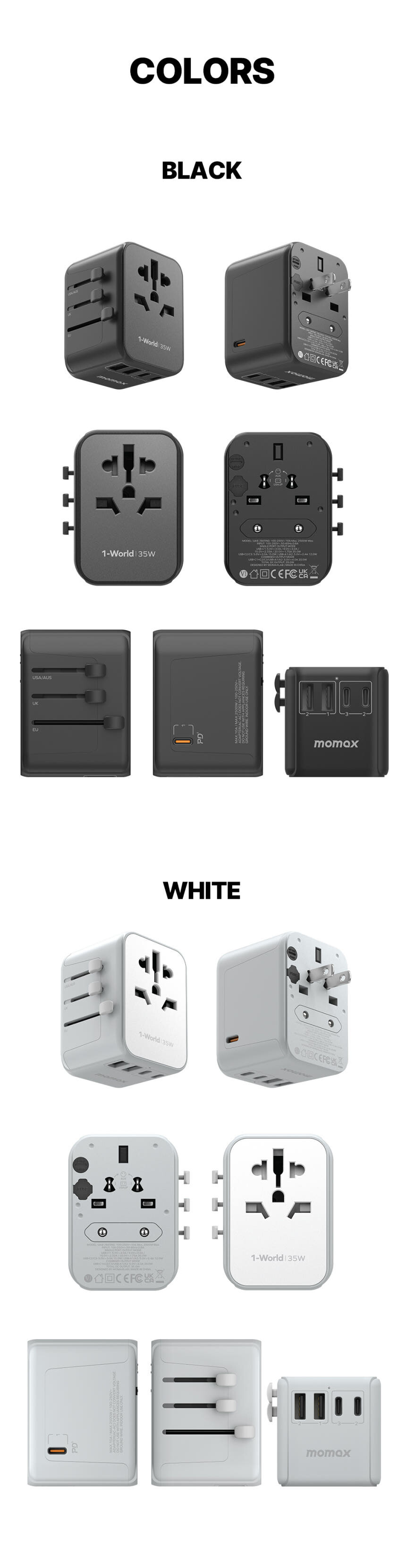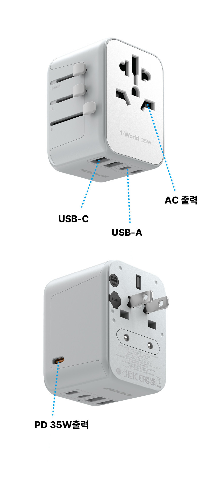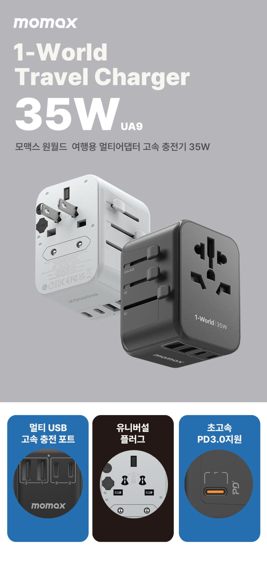 모맥스 원월드 35W UA9 해외여행용 멀티어댑터 충전기 플러그