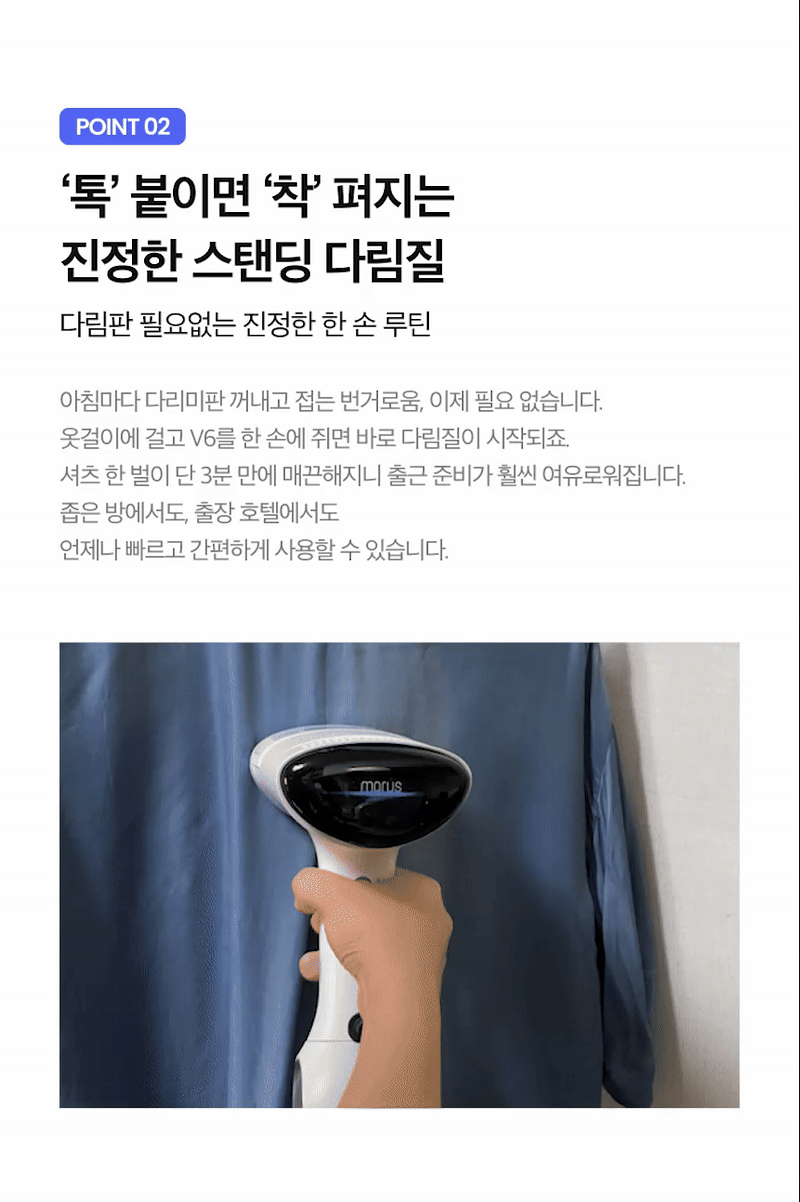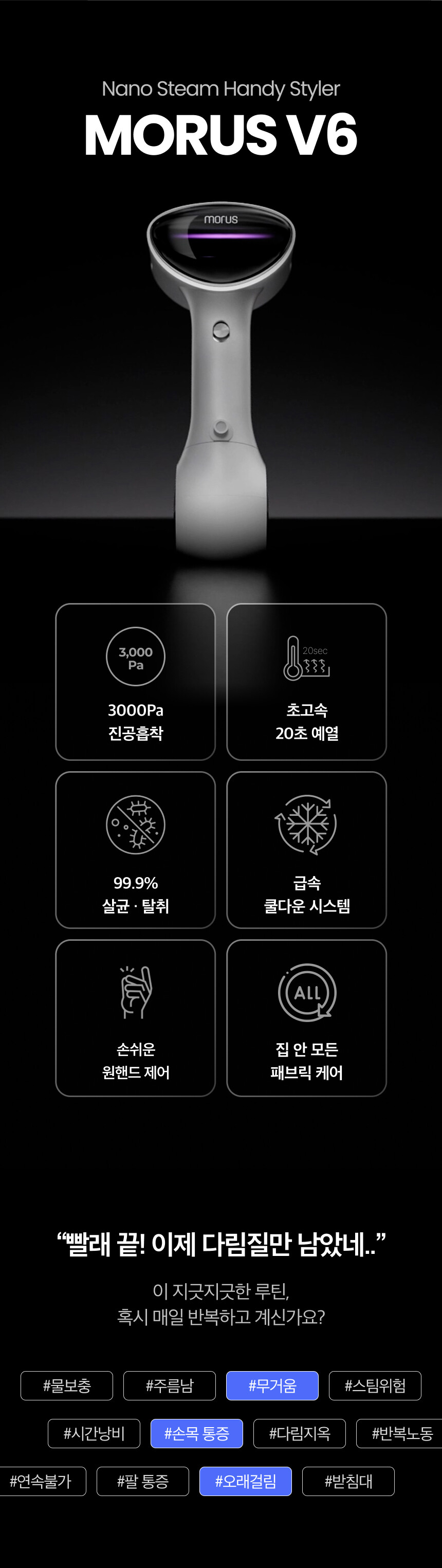 프리미엄 의류 관리의 시작. 모러스V6 핸디스타일러입니다.