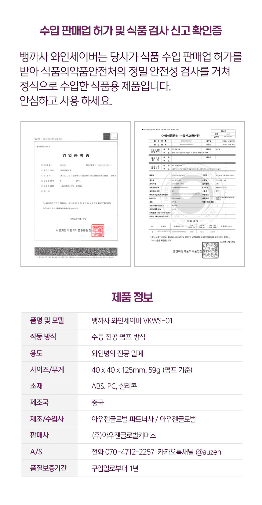 뱅까사 와인세이버 진공펌프 & 스토퍼 4P